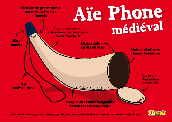 Je créé en 2009, la marque d’illustration Carapie, je détourne le médiéval avec des dessins humoristiques que je décline sur cartes postales, t-shirt, mugs etc…