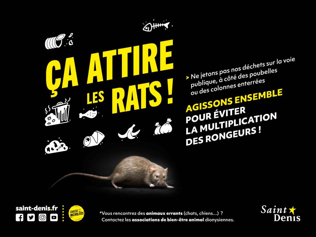 Nous avons créé des affiches percutantes d’un rat sur fond noir avec une typo jaune pour marquer les esprits.