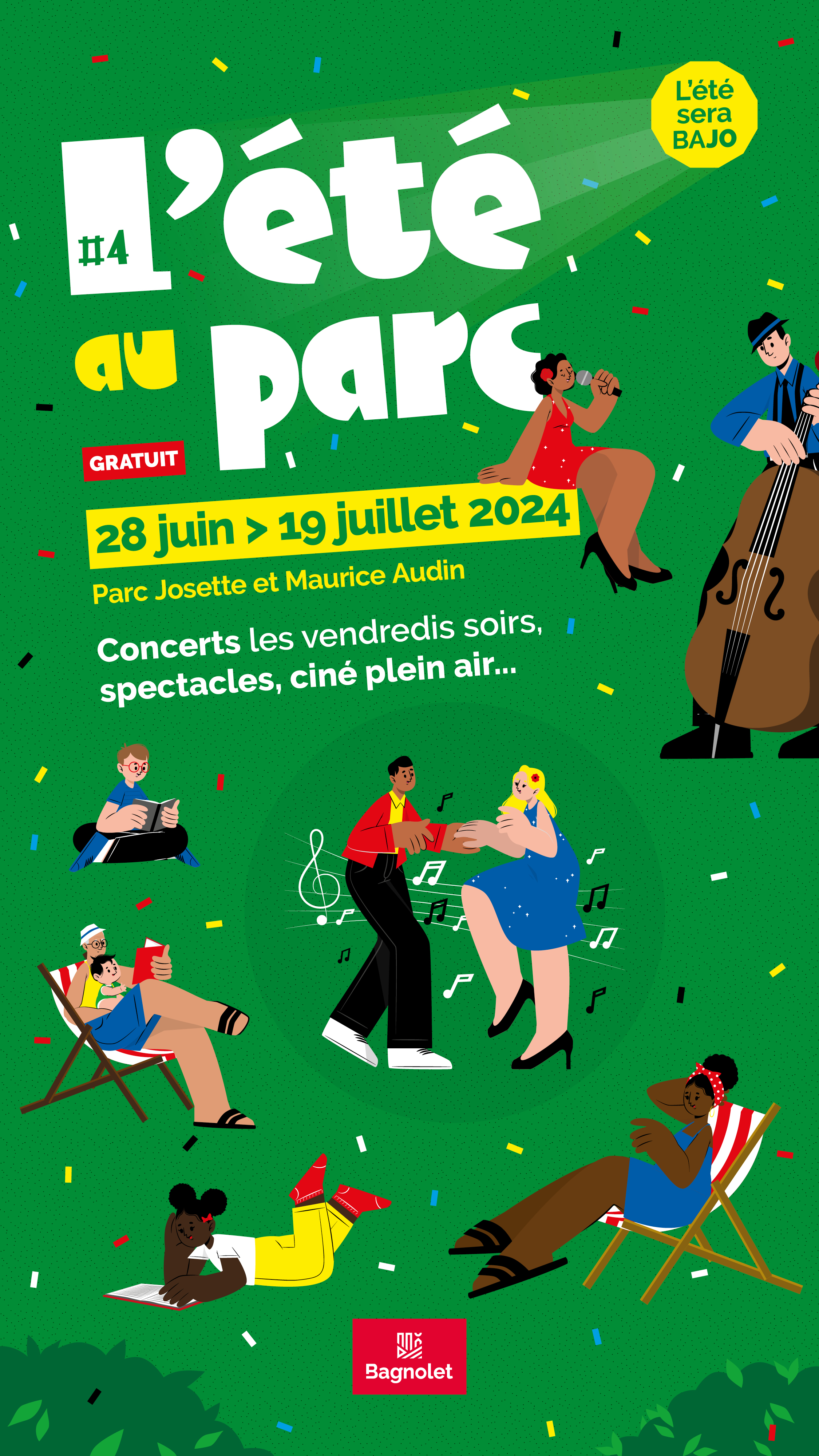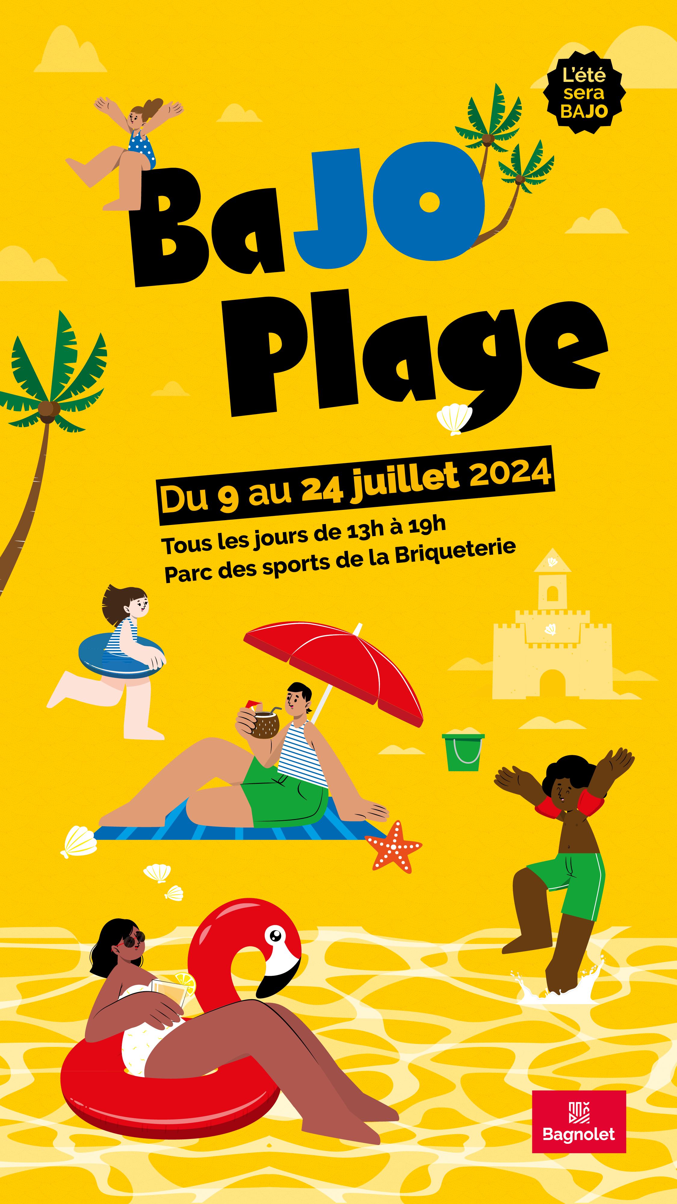 Une campagne générique L’été sera BaJO (Bajo = Bagnolet dans l’historique de Bagnolet, façon JO avec cet été accueillant les Jeux Olympiques). Cela regroupe les temps forts de l’été, voir ci-dessous.